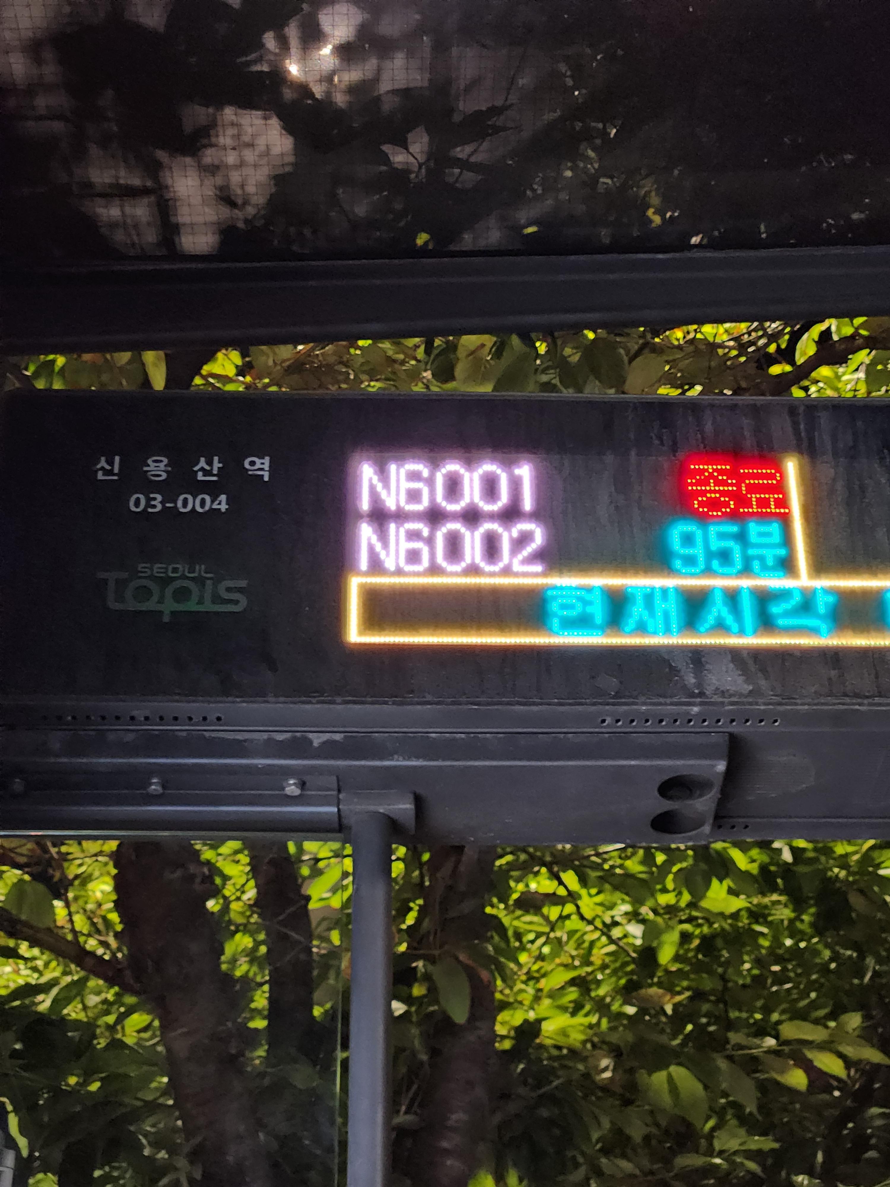 서울대학교 근처 살던 때라, 501번 타고 바로 신용산역으로 왔는데 바로 저 N6001 종료... 표시 보이시나요?